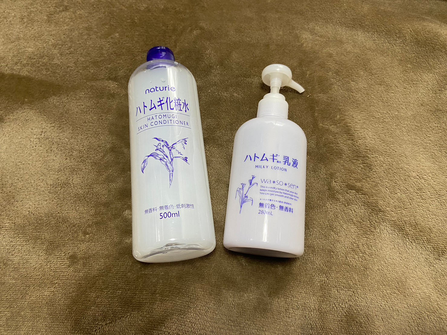 ちなみにこの写真はハトムギの化粧水と乳液です![]()