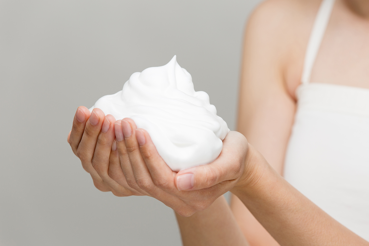 たっぷりの泡で優しくるくると円を描くように洗います![]()