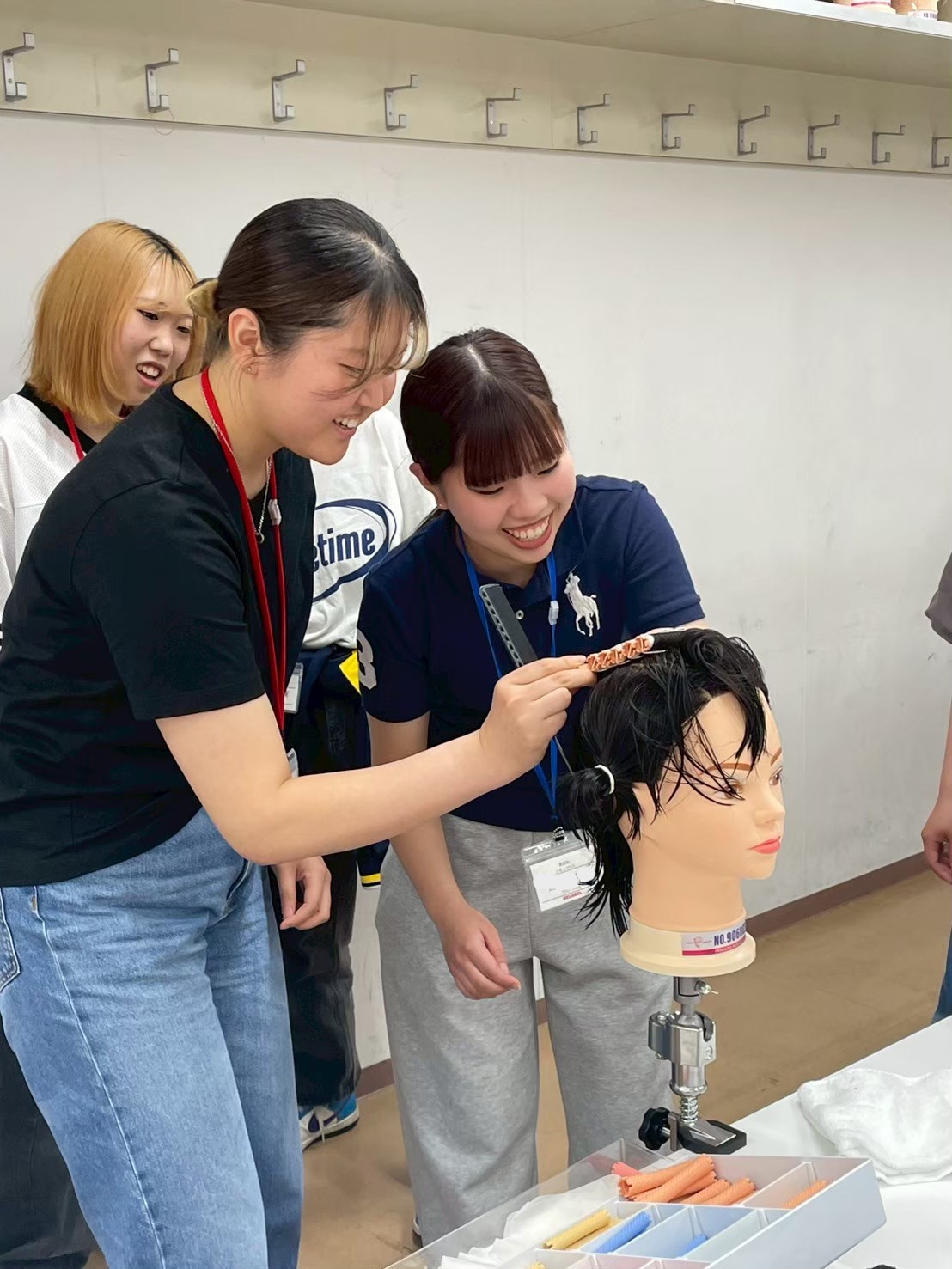 かるく練習をして、どのペアが1番キレイに早く巻けるかの競争、